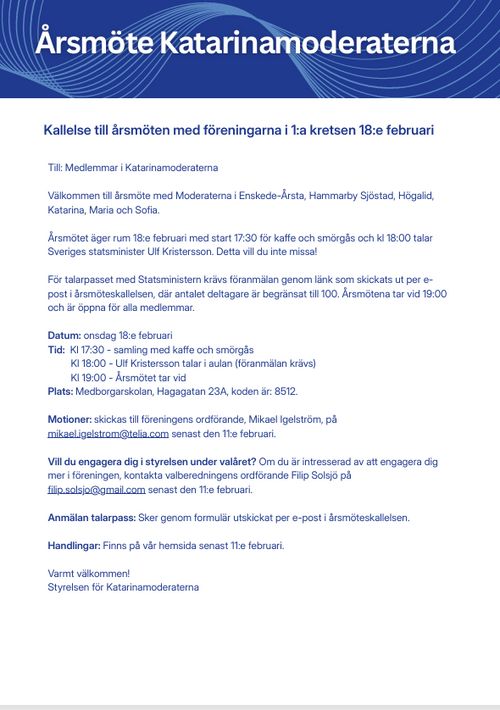 Årsmöte Katarinamoderaterna 2026